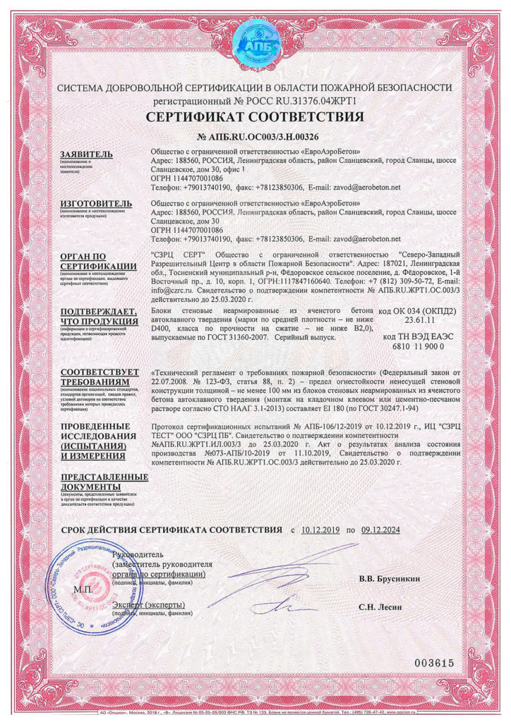 Подтвержденное сертификатами и действующими ГОСТ